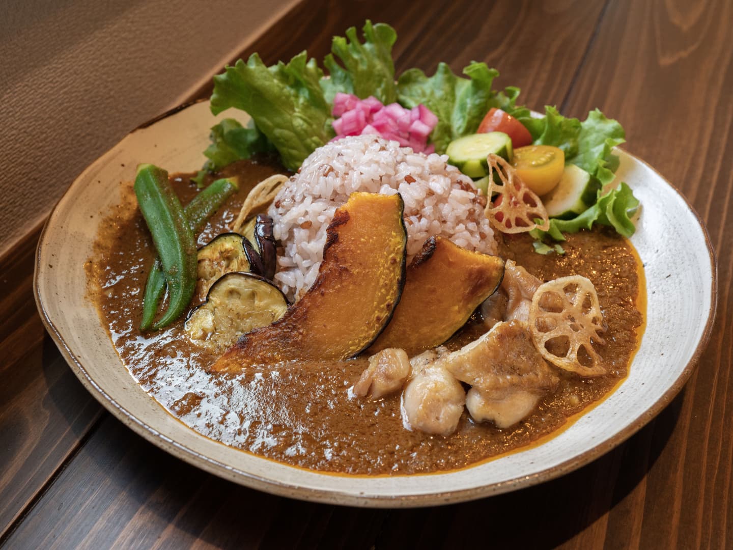 明日香村で採れた野菜がいっぱいのスパイスカレーです。